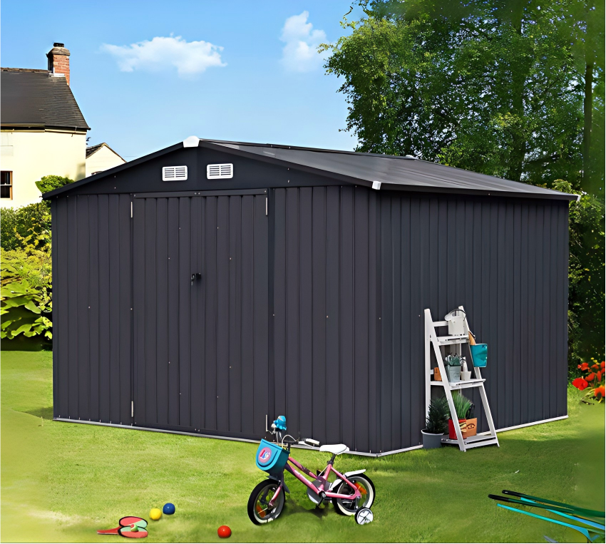 • Spacious interior fits tools, bikes and garden equipment